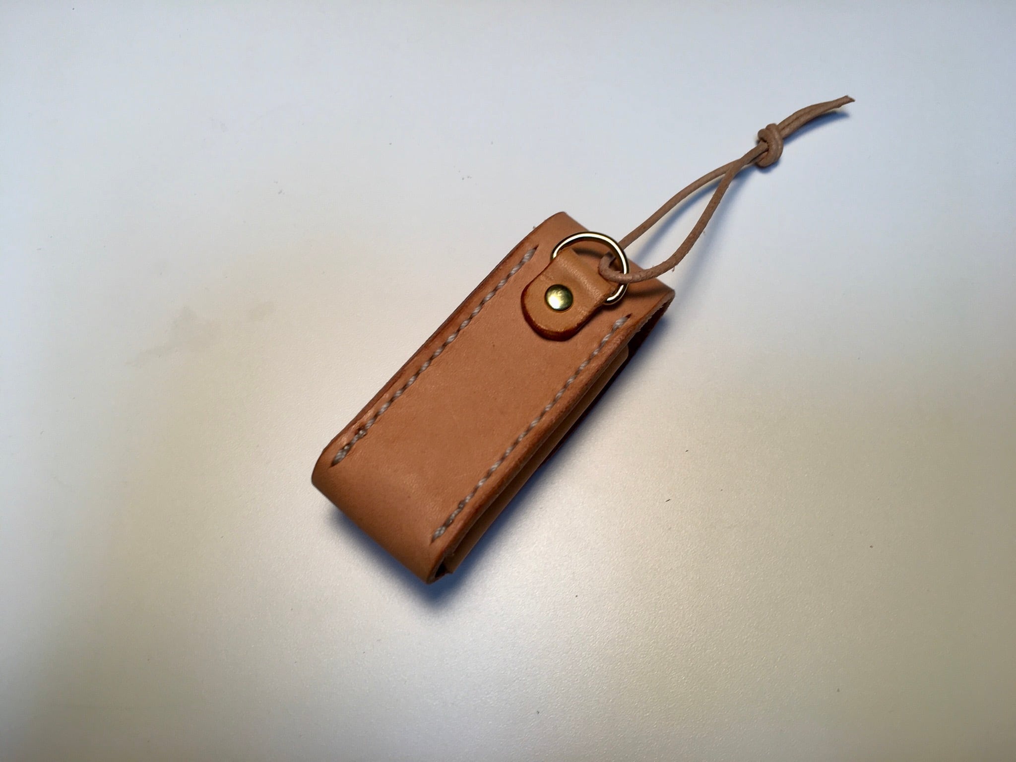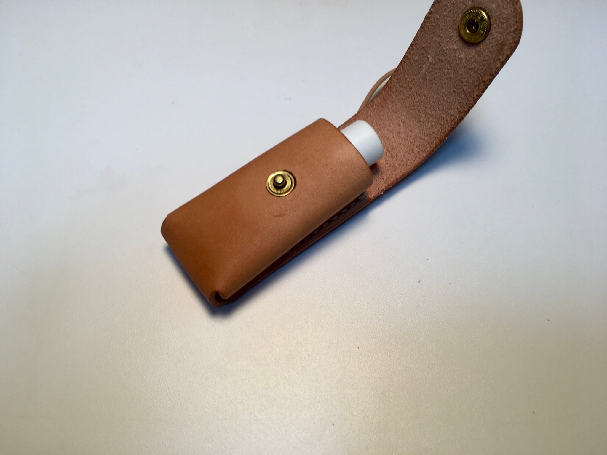 ヌメ革で製作したリップクリームケースです。